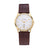 Titan: Edge, stainless steel gold plated quartz watch, with white dial. Complemented with a brown leather watchband
